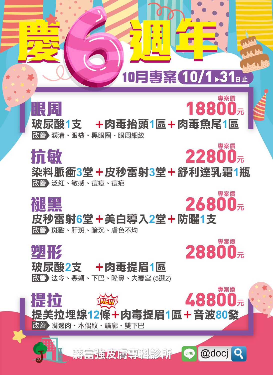 十月慶周年,皮秒、玻尿酸、埋線等課程享專案價,歡迎LINE ID搜尋 @docj 諮詢,10/31止。 (點入看海報)