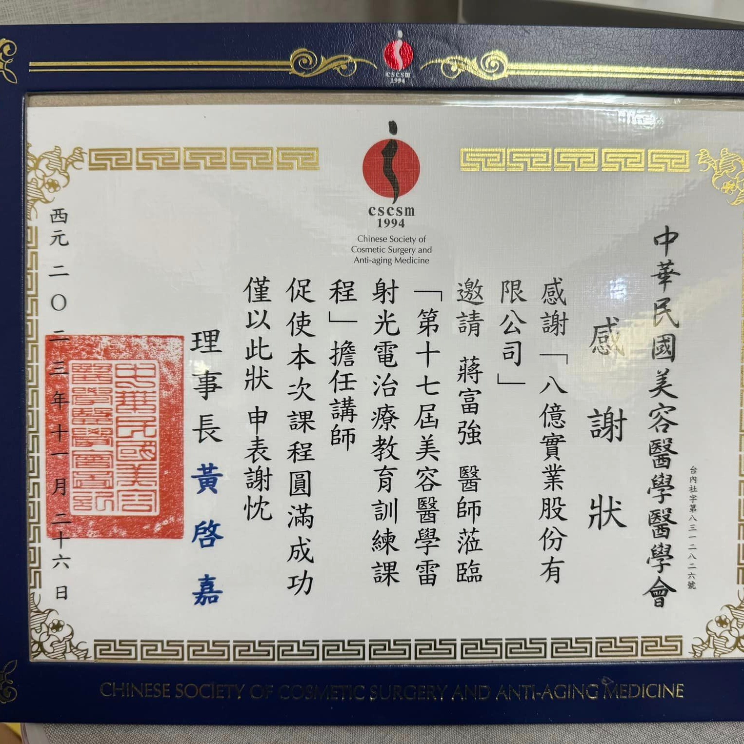 第17屆「美容醫學雷射光電治療訓練課程」圓滿完成。 期待學員醫師們聽講後能更精進技術