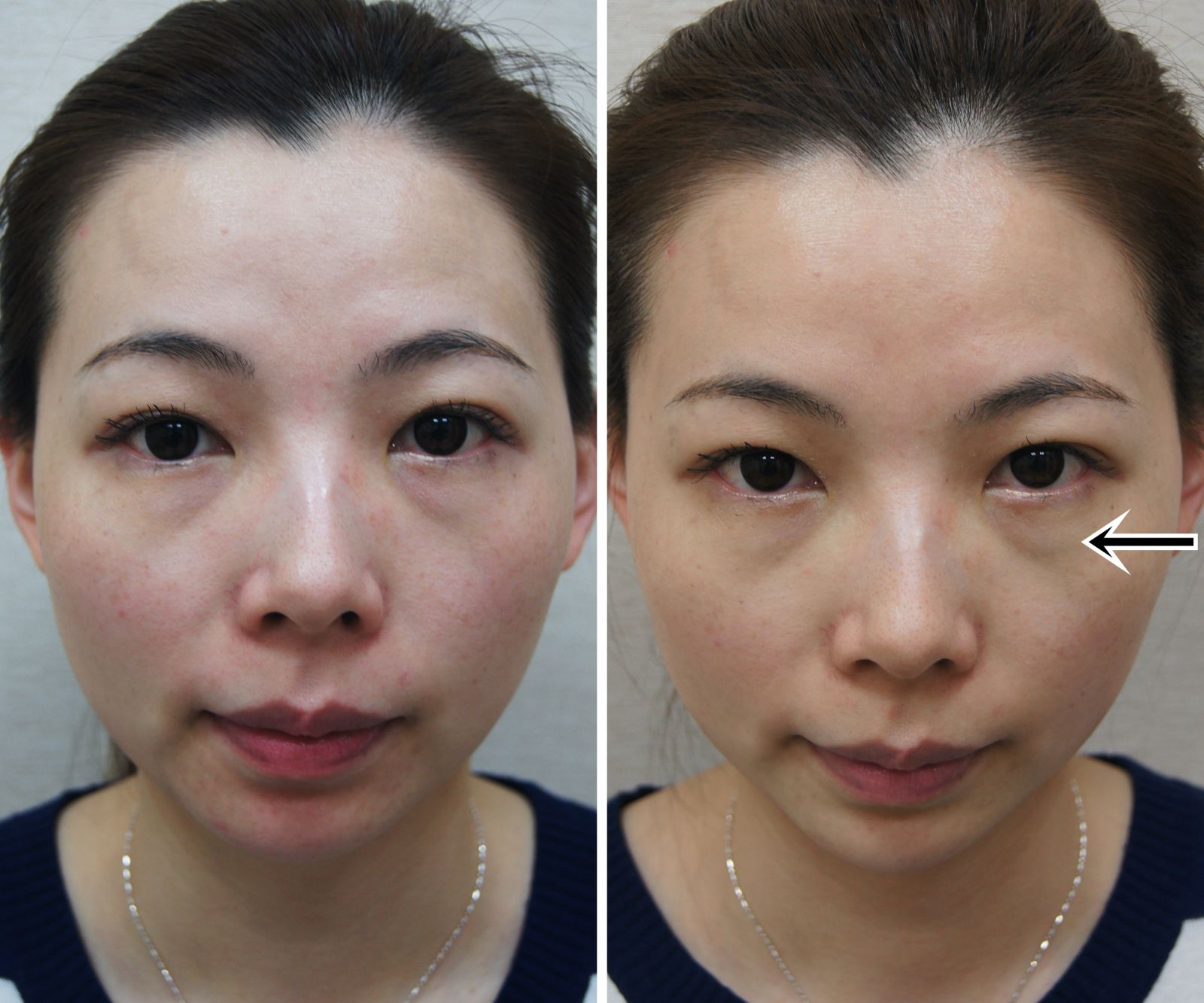 右眼打完,黑眼圈的確消散很多,左邊則還沒打。