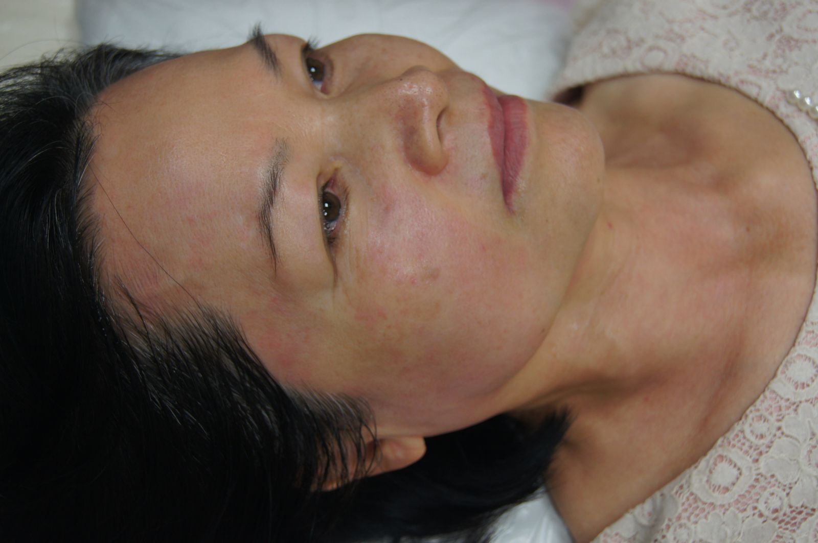 媽媽完成了音波拉皮後,還加做染料脈衝除斑(難得從彰化上來,肌膚問題一次出清呀),主要希望改善膚色、改善膚質、去除黑斑。