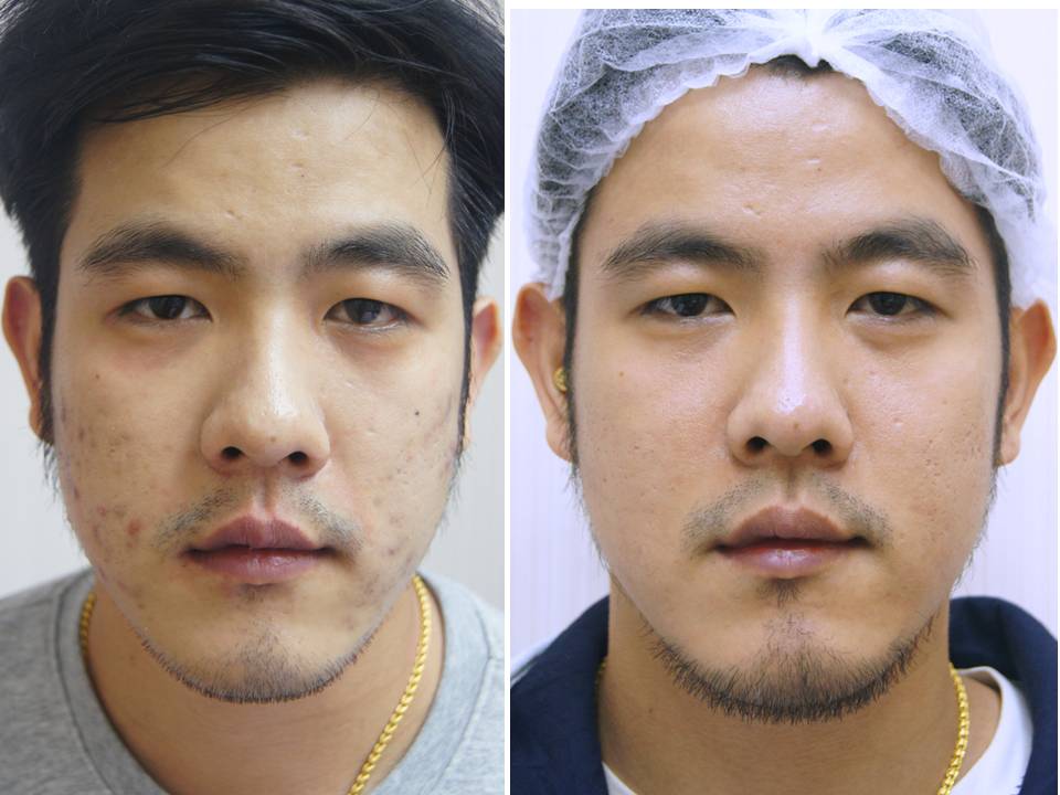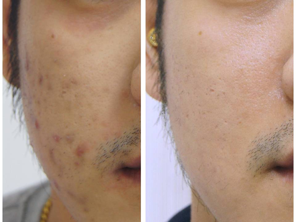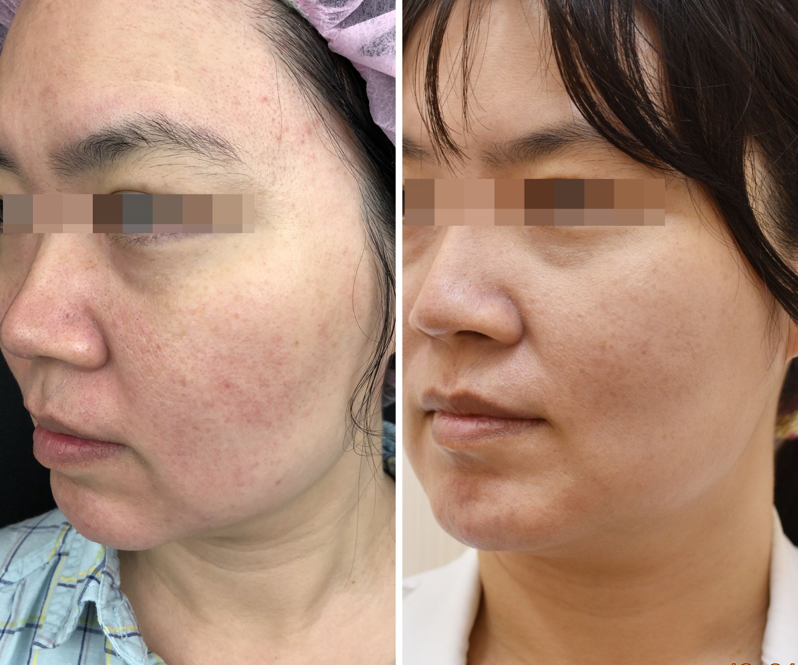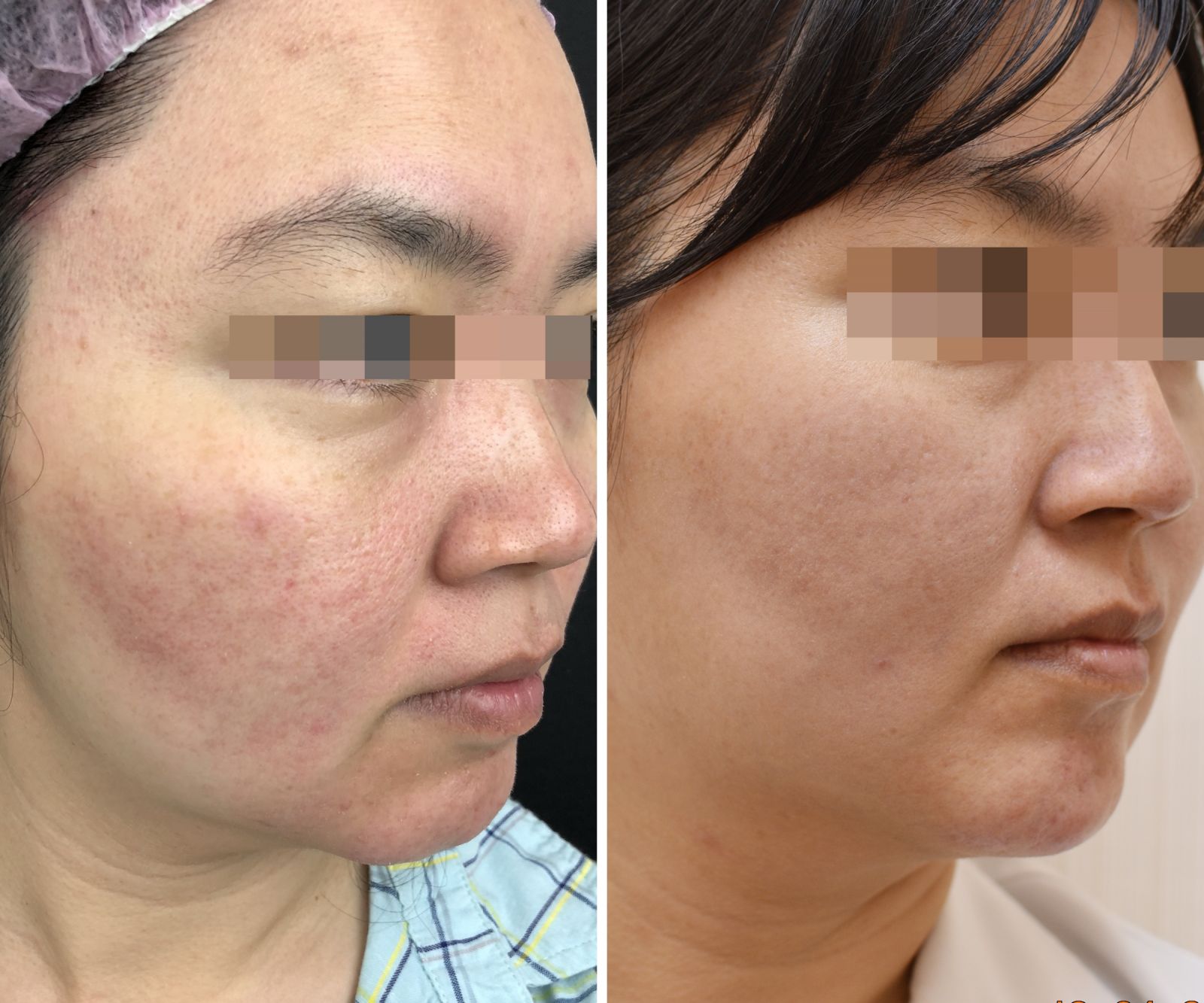 色素性病灶消退後,進一步使用飛梭雷射來控油、縮毛孔、淡化凹疤。