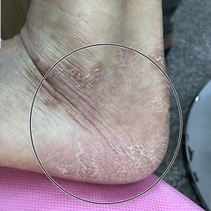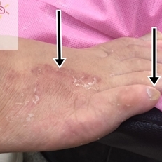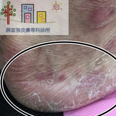 足癬,是皮癬菌感染的代表性疾病,亦稱香港腳。如圖可見足底有增厚脫屑的病灶,並且常常不癢。