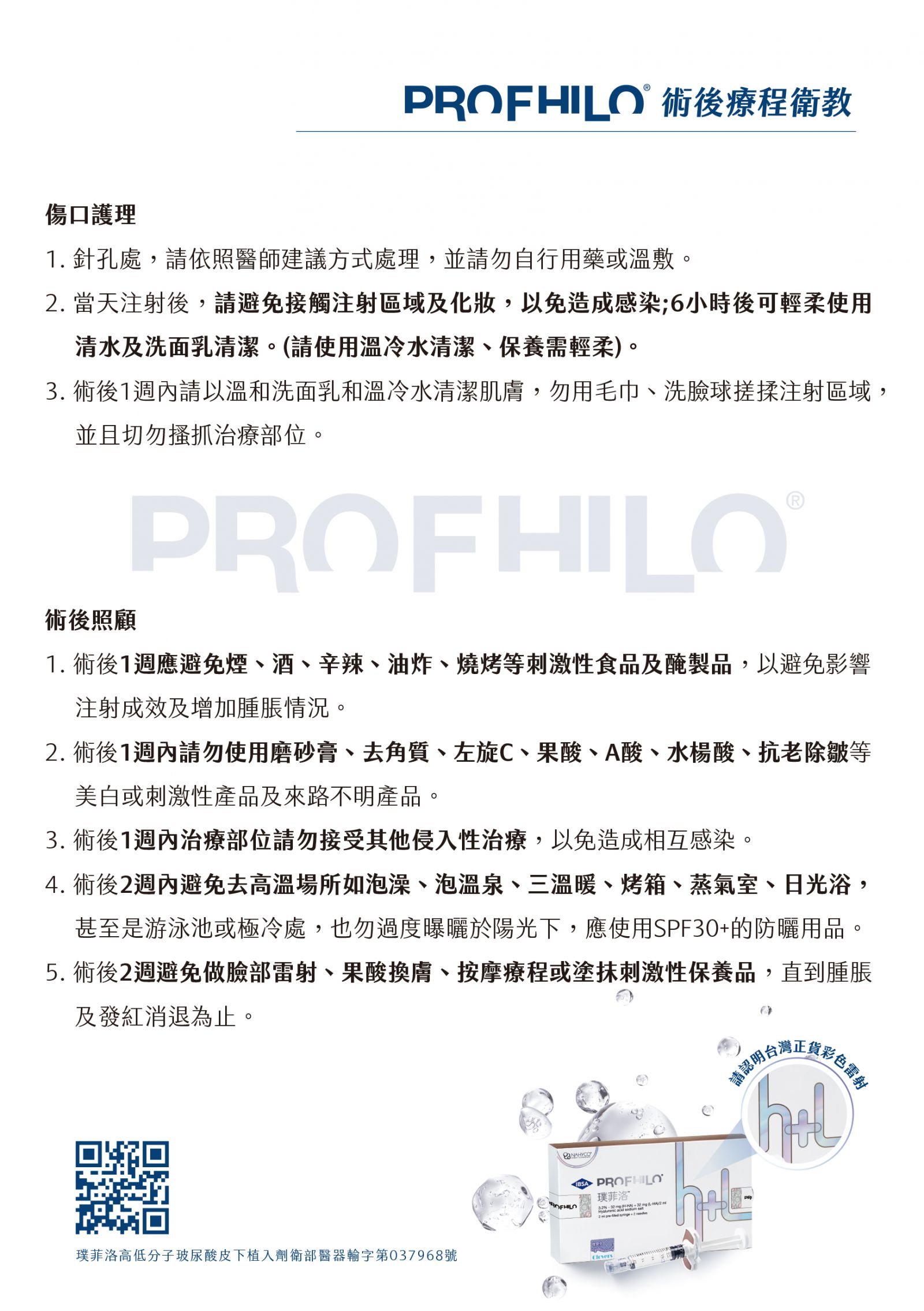- 高度相容性:Profhilo® 成分為玻尿酸,與人體高度相容,且療效透過肌膚自我重塑而非發炎反應產生。