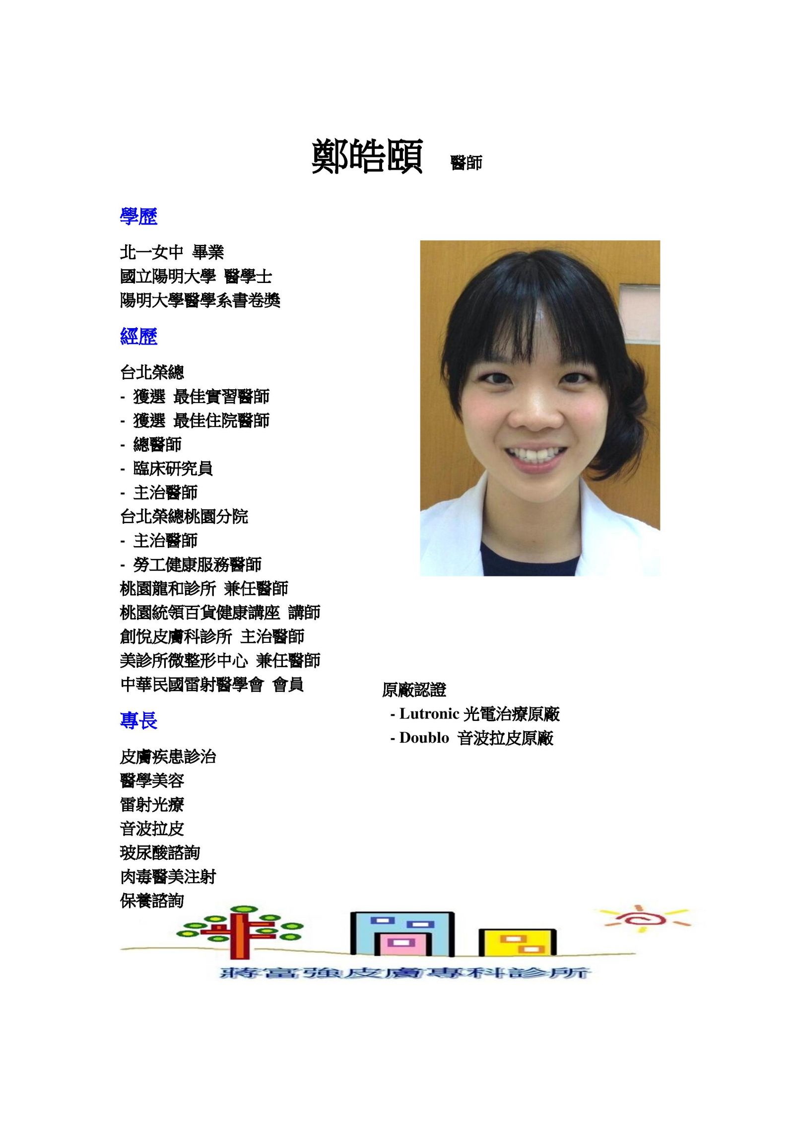 歡迎台北榮總鄭皓頤醫師,三月起駐診指導(診次請見門診表)