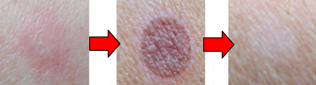 待7~14天結痂脫落,斑即消失而呈現粉紅色的新生膚色。